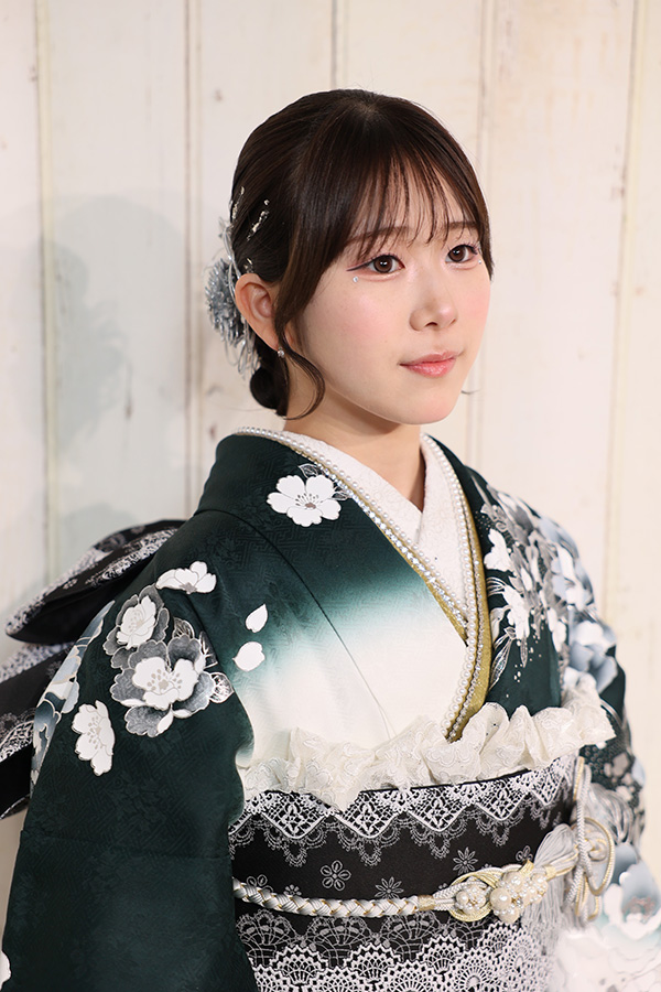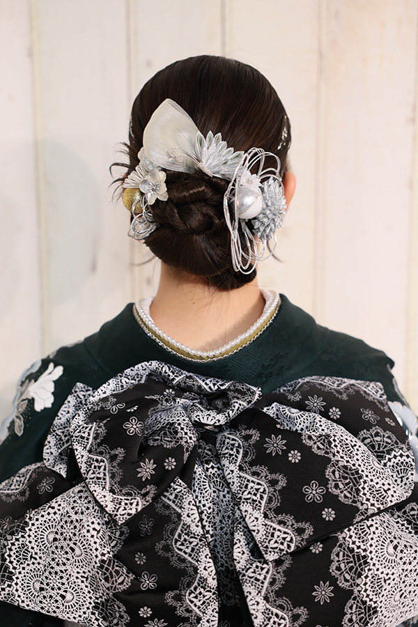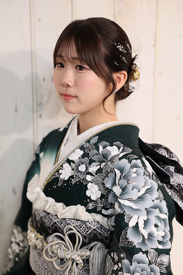 振袖と色を揃えた髪飾りで、全体に統一感を持たせました。